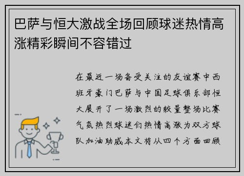 巴萨与恒大激战全场回顾球迷热情高涨精彩瞬间不容错过